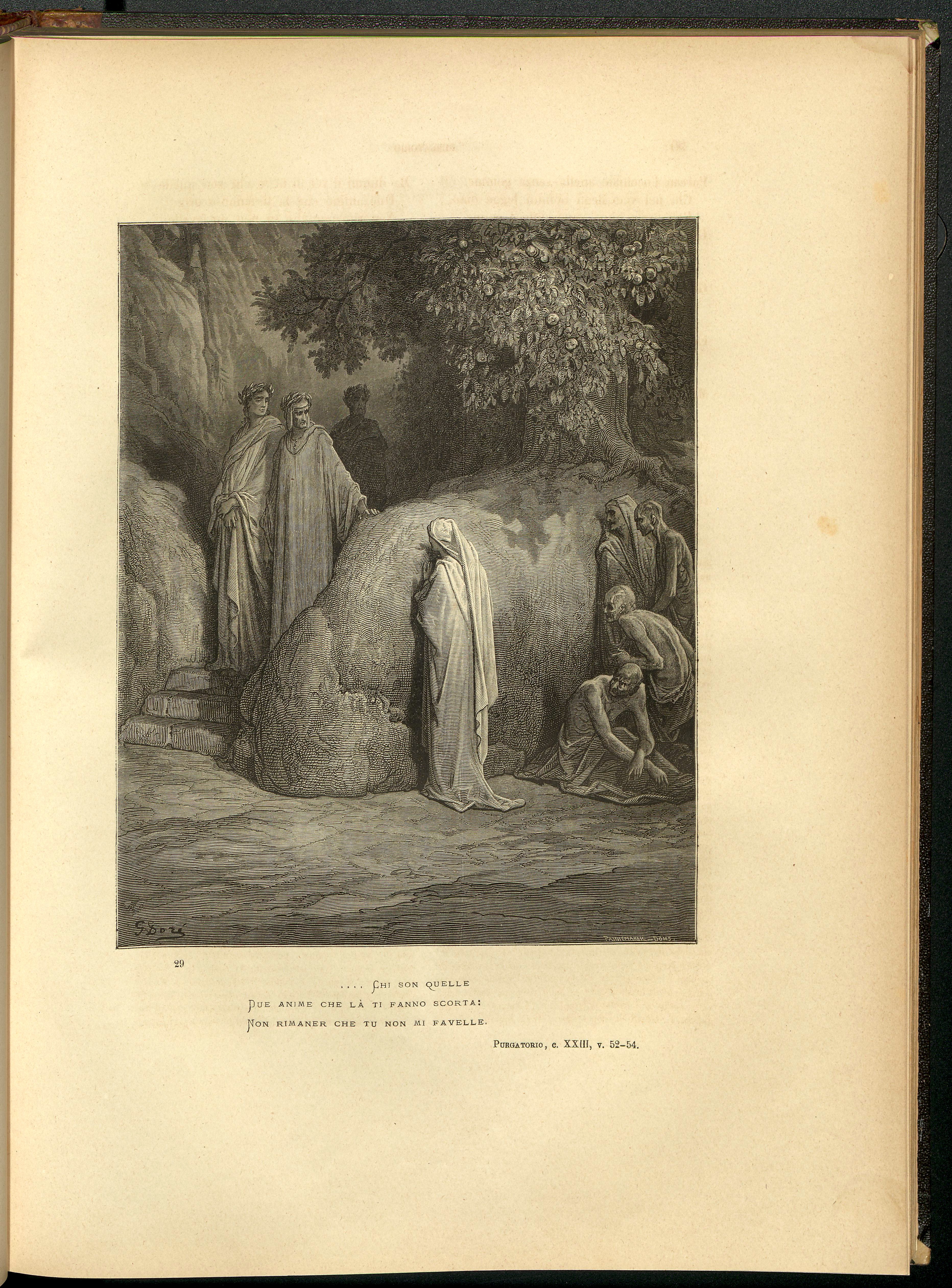 L’incisione dell’incontro fra il poeta e l’amico (Purg., XXIII) è di Gustave Doré, tratta da: